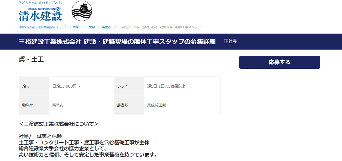 〇建設関係 鳶・土工などの専門職 ゼネコンなどからの発注 〇土工工事 地下構造物施工の為の地盤掘削・発生土の搬出 コンクリート打設 その他雑作業等に関する施工・管理 〇鳶工事 足場・クレーン(揚重機)等の組払し、鉄骨の組立等高所での作業に関する施工・管理 〇解体工事 建て替えする建物の解体に関する施工・管理 〇土木関係 土木一般 (公共工事・官庁関連からの発注) 宅地造成 (土地区画整理組合等からの発注) に関する施工・管理 |
